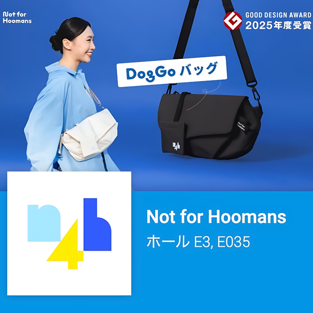 会場では、2025年度グッドデザイン賞を受賞した「DogGoバッグ」を中心に、ギフトセットや補強ストラップなどのオプション製品を直接手に取ってご覧いただけます。皆様のご来場を心よりお待ちしております。